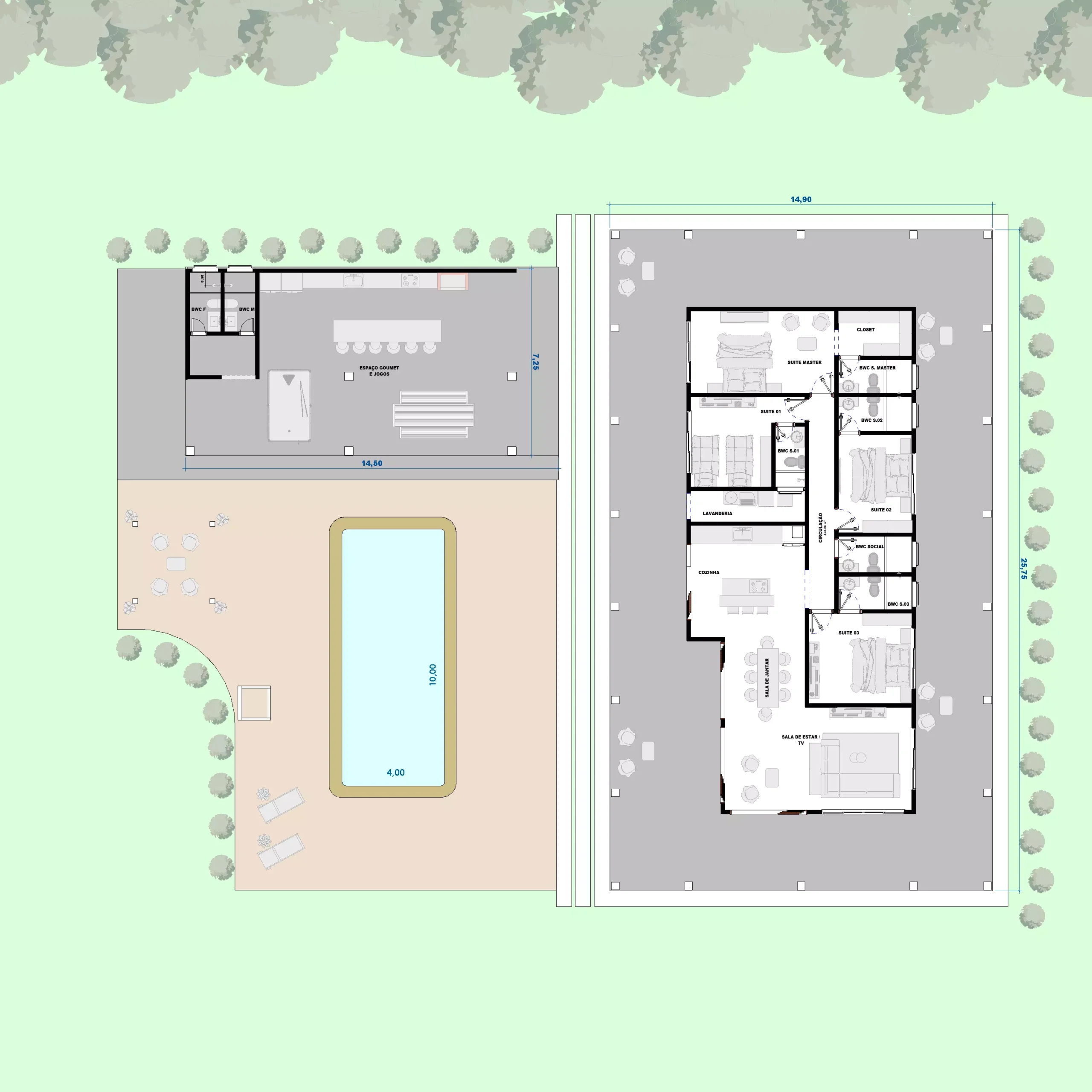 Os PDFs são compatíveis com visualização em dispositivos móveis e computadores, pronto para você mandar imprimir em tamanho A1 em gráfica ou papelaria. Adicionalmente, são enviados os arquivos editáveis (DWG) do Autocad.