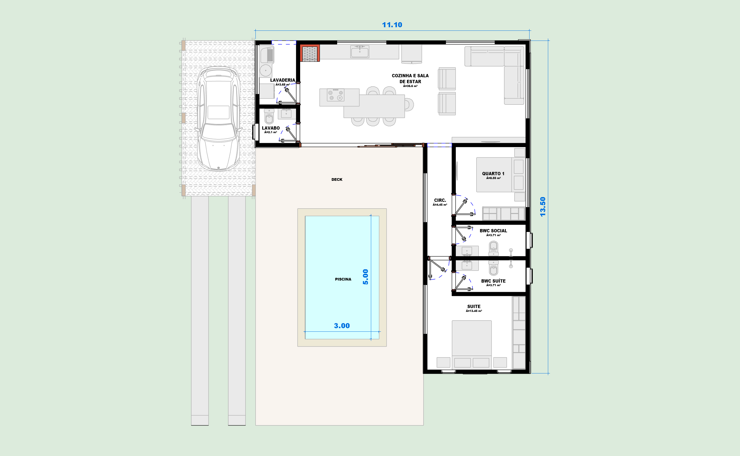 Aqui na Projetar Online, você pode adaptar tudo: aumentar a suíte, ampliar a varanda, mudar o formato da piscina ou ajustar o layout pro seu terreno.